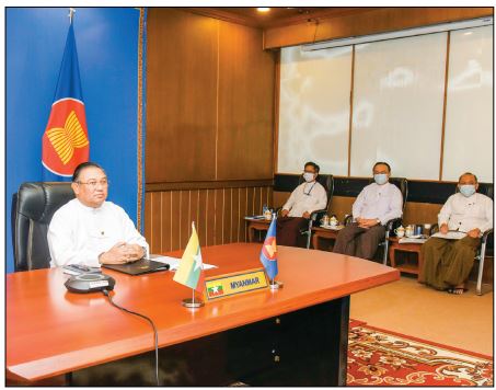 U Wunna Maung Lwin, Union Minister for Ministry of Foreign Affairs attended the Special ASEAN-Russia Foreign Ministers’ Meeting which was held via video conference on 6 July 2021. The meeting was co-chaired by Retno Marsudi, Minister for Foreign Affairs of Indonesia and Sergey Lavrov, Minister of Foreign Affairs of the Russian Federation, and was attended by Foreign Ministers from the ASEAN Member States and the Secretary-General of ASEAN.