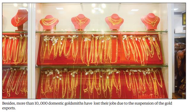 Besides, more than 10,.000 domestic goldsmiths have lost their jobs due to the suspension of the gold exports, he added.