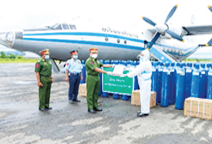 After that, 50 oxygen tanks donated by voluntary donors and 50 oxygen tanks ordered from Western Military Command were transported from Myitkyina to Ayeyawady Region by military plane.