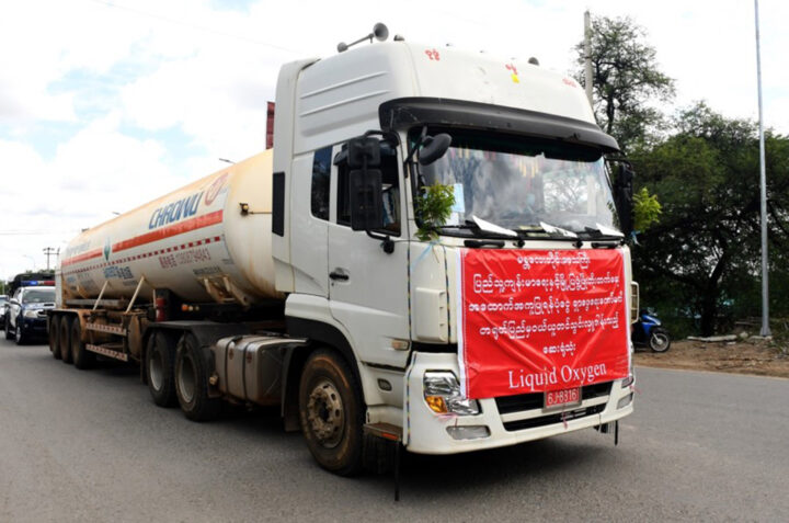 The oxygen cylinders will be distributed to Yangon, Bago and Mandalay regions.