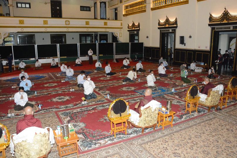 Next Sayadaws (Buddhist monks) preached sermons and shared merits for the fallen leaders, followed by the donation of alms-food for day-meals to the members of Sangha.