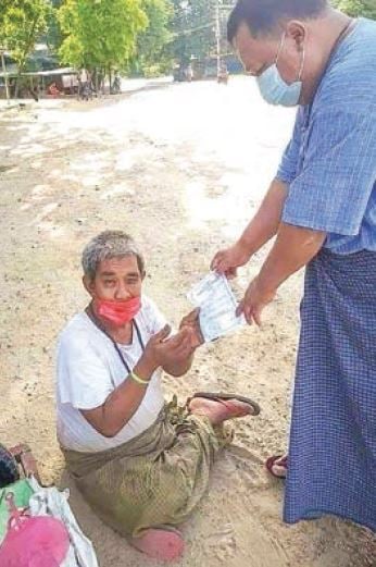 A disabled person with a wheelchair donated 30,000 kyats for the construction of an oxygen plant in Yenangyaung on 18 July.