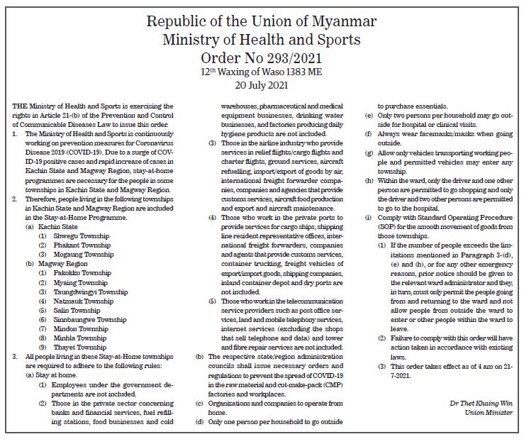 Order No 293/2021 #TheGlobalNewLightOfMyanmar