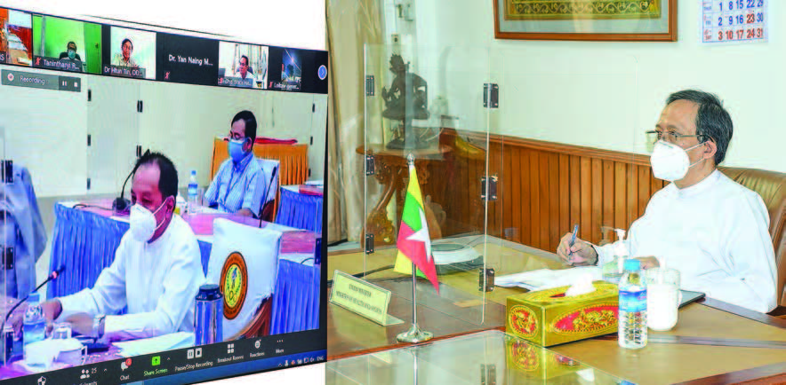 The Union Minister also met the Heads of Public Health of Taninthayi Region, Chin, Rakhine and Kayah states via videoconferencing at noon.
