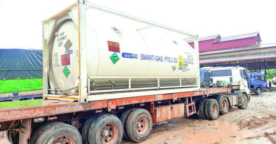 A vehicle carrying 20 tonnes of liquid oxygen for Yangon Region left Myawady Trade Zone at 3:40 pm yesterday as imports processes of the anti-COVID-19 supplies are being allowed through the Myawady border to assist in the prevention and control of the pandemic.