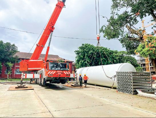 The station can hold 50 tonnes and produce 7,500 gas oxygen cylinders (40 litres) and 60 cylinders (40 litres) per hour. It can also produce 1,440 cylinders (40 litres) during 24 hours.