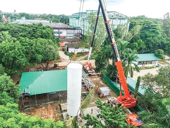 AN Oxygen Tank Station, which can produce 1,440 oxygen cylinders of 40-litre capacity per day, is under construction at the 1,000-bedded Military Hospital in Mingaladon Township of Yangon Region. It was slated for completion by the end of July.