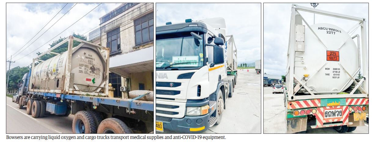 A total of 3,294 oxygen concentrators and 0.5 tonne of masks arrived at the Yangon International Airport yesterday, while 59 tonnes of liquid oxygen on bowsers, 38 tonnes of liquid oxygen cylinders, one tonne of oxygen cylinder, 8,910 empty cylinders, 3,745 home oxygen concentrators, one tonne of glove and 67 tonnes of masks were imported at Muse, Myawady, Chinshwehaw, Kanpaitee and Tamu border trade checkpoints. These materials were transported by 52 vehicles of 30 companies.