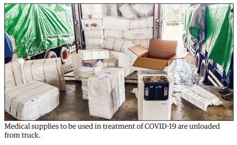 A total of 457 tonnes of liquid oxygen on bowsers, 89 tonnes of liquid oxygen cylinders, 63 tonnes of oxygen cylinders, 56,790 empty oxygen containers, six oxygen plants, nine oxygen generators, 45,934 household oxygen concentrators, 141,642 test kits, 280,932 PPE suits, 40 tonnes of gloves and 636 tonnes of masks have been imported so far in August.