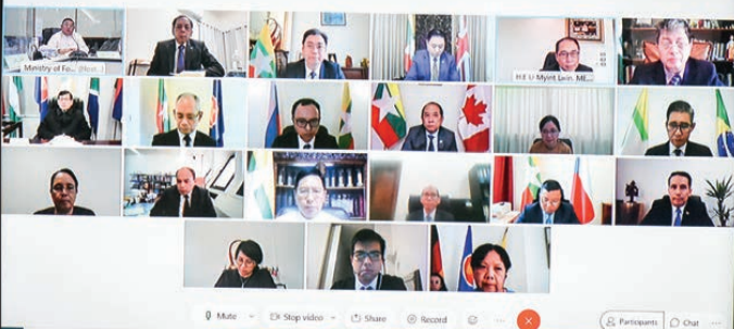 The meeting was also attended by the deputy minister, permanent secretary and senior officials from the Ministry of Foreign Affairs. It was learnt that the similar virtual coordination meeting with the heads of Myanmar Missions from Asia and Pacific Zone was held on 11 August 2021.