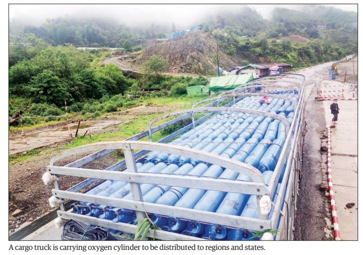Of 76 liquid oxygen bowsers imported between 1 July and 14 August, 58 of them were distributed to Yangon, 11 to Mandalay, 2 to Bago, 4 to Mawlamyine and 1 to Thaton respectively. Among 30 oxygen plants, 5 were transported to Lashio, 4 to Yangon, 4 to Bago, 3 to Mandalay, 2 to Pakokku, 2 to Hpa-an, 2 to Mawlamyine, one each to Taunggyi, Thanbyuzayat, Magway, Dawei, Wakema, Myittha, Kyaukpadaung and Mogaung respectively.