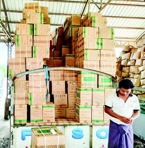 Yesterday, 606 oxygen concentrators, 500 PPE suits were imported through the Yangon International Airport while 12 tonnes of liquid oxygen cylinders, 1,440 empty oxygen cylinders, one storage container/tank and one oxygen generator via seaports. In addition, 39 tonnes of liquid oxygen, 36 tonnes of oxygen liquid in cylinders, one liquid oxygen storage container/tank, seven oxygen plants, six oxygen generators, 1,113 home oxygen concentrators, 24,000 test kits, 112,500 PPE suits, 13 tonnes of gloves and 67 tonnes of masks were imported through border trade points.