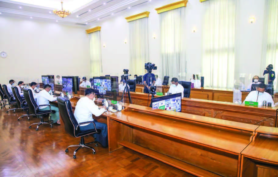 Union Ministers for the respective regions and states briefed on the COVID-19 vaccinations in the regions of ethnic armed forces; implementation to vaccinate more than 5 million IDPs in Kachin State, Shan State, Kayin State and Rakhine State in this week, and the systematic record of vaccinated people in regions and states.