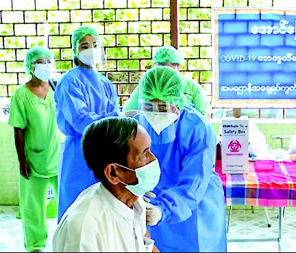 The health workers launched the first COVID vaccine shots for people over the age of 65 starting 25 July while the second injection at respective vaccination gathering points in Aungmyaythazan Township was yesterday.