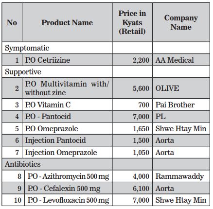Submitted by moiuser on 28 August 2021 Price list of medicines commonly used against COVID-19 as of 6 pm on 27 August #TheGlobalNewLightOfMyanmar