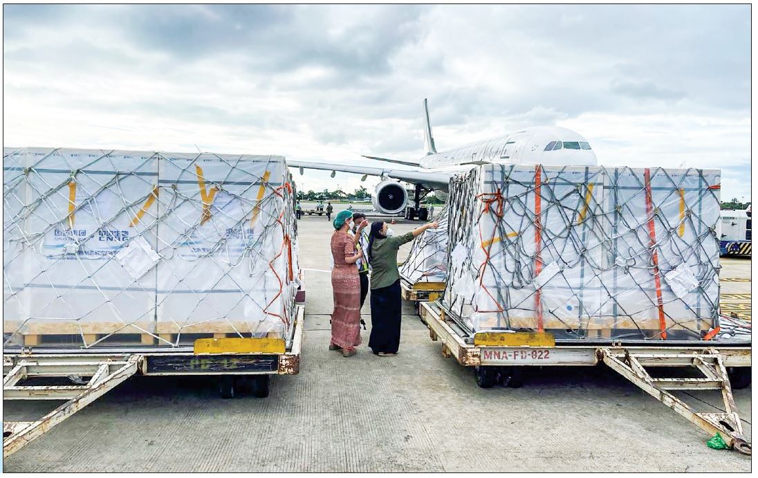 A total of two million doses of Sinopharm COVID-19 vaccines, purchased from the People’s Republic of China, arrived at Yangon International Airport yesterday evening.