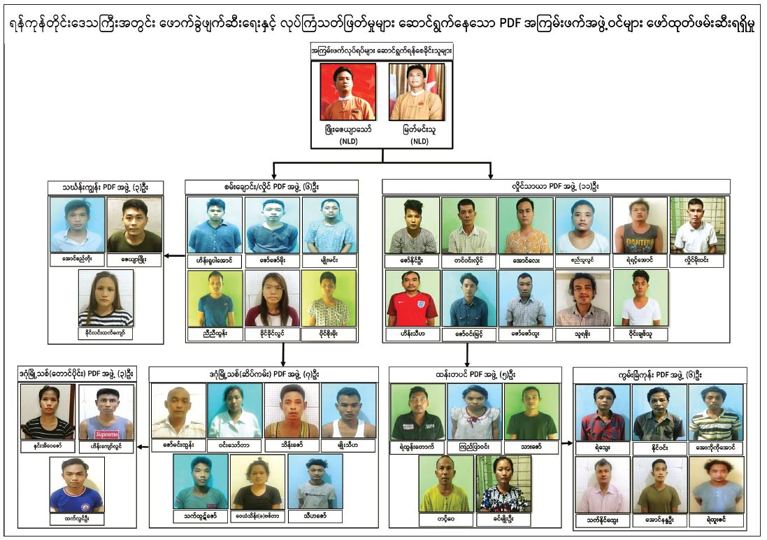Some of the arrested PDF members claimed that they attended the terrorist training courses in KNLA territory and carried out a total of 30 explosions in Yangon Region between May and August 2021.