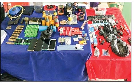 Security forces confiscated homemade guns and mines and related materials in the farm of Kalargyi (on the run) in Dedanaw village in Kungyangon Township, following the confession of the arrested criminals.