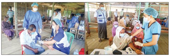 A total of 161 men and 137 women were vaccinated at Hngetchaung IDP camp-1 and 185 men and 185 women at Hngetchaung IDP camp-2. Moreover, health staff vaccinated 22 men and 29 women at Saingtok IDP camp, two men and two women at Kanseik Village IDP camp and two men and three women at Nagway Village IDP camp, totaling 60.