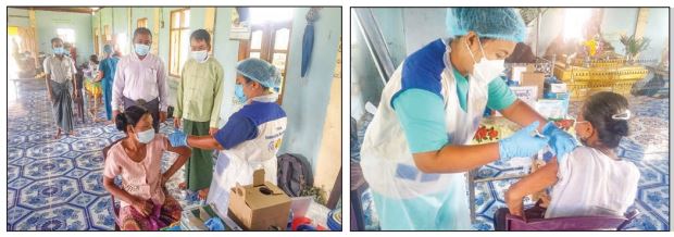 ANTI-COVID-19 vaccines were given to the people from two Hngetchaung IDP camps in Ponnagyi Village-tract and Saingtok Village-tract in Pauktaw Township of Rakhine State on 31 August and 1 September.