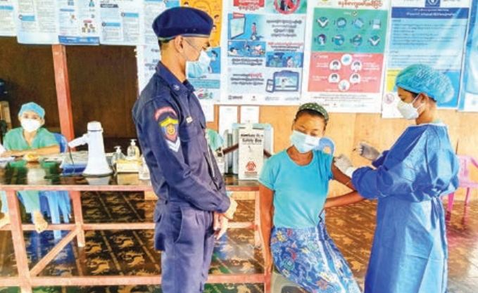 Township administration body Chairman U Min Oo, Head of Public Health Department Dr Than Tun Oo, health workers, staff of the General Administration Department, members of the Red Cross Society, the ward administrators and the in-charge of the camps jointly conducted the vaccination programmes as per the COVID-19 health rules.