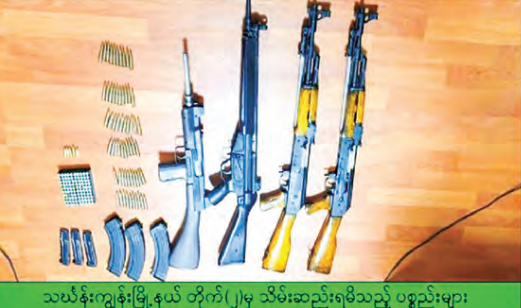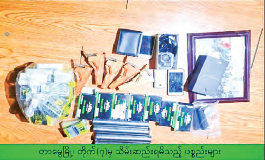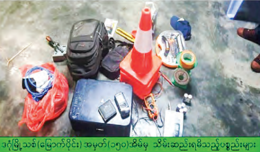 The confession of the suspects led to the place of pistols used in the attack, and the security forces found and confiscated a communicator (Hytera) and related materials at No 44, Yankyiaung street, Motelatsaung hill (North), Sangyaung.