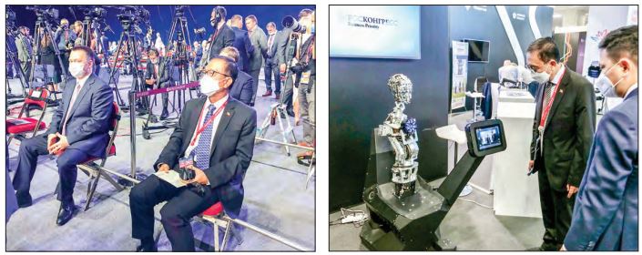 On the last day of Forum on 4 September, the Union Minister and party greeted the officials of Roscongress Foundation and viewed the displayed booths of the Forum.