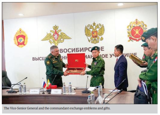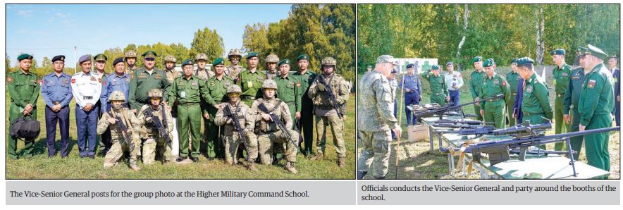 THE delegation led by Vice-Chairman of the State Administration Council Deputy Commander-in-Chief of Defence Services Commander-in-Chief (Army) Vice-Senior General Soe Win, currently in Novosibirsk of the Russian Federation, accompanied by Military Attaché Commodore Kyaw Soe Moe and officials, arrived at the Higher Military Command School in the morning of local standard time on 6 September. They were welcomed by Commandant Colonel Segey Markovchin and officials.