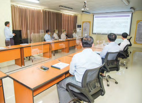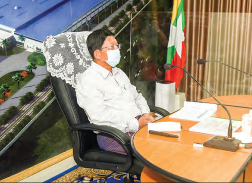 At the meeting hall, Union Minister Admiral Tin Aung San and officials reported to the Senior General on a brief history of Myanma Railways, duty and functions, the appointment of service personnel at factories and departments, running of trains across the nation and further plans, construction of new railways, the building of passenger carriages and wagons and maintenance, upgrade of rail tracts, matters related to New Locomotive Assembling Factory (Nay Pyi Taw), preparation to build the Railway Museum, and implementation of the guidance given by the Senior General on his tour of Myanma Railway’s Carriage and Wagon Factory (Myitnge) on 18 May 2021.