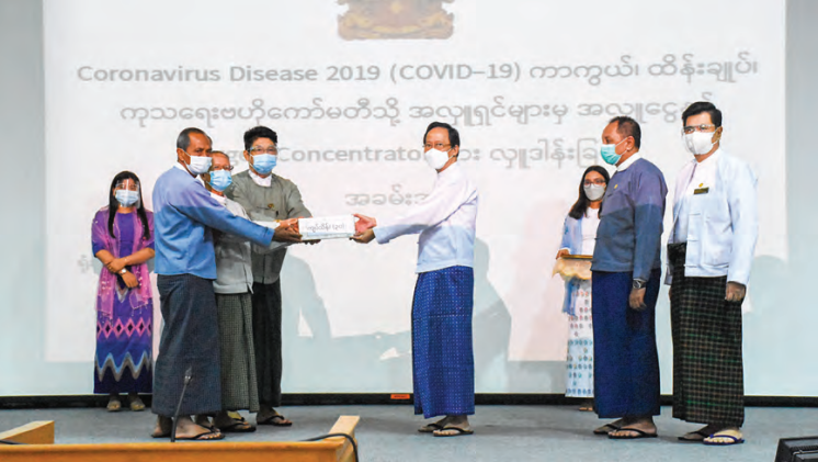 After donations, Union Minister Dr Thet Khaing Win presented certificates of honour to the donors. Afterwards, the Union Minister expressed words of thanks and appreciation for the donation of K3 million and oxygen concentrators.