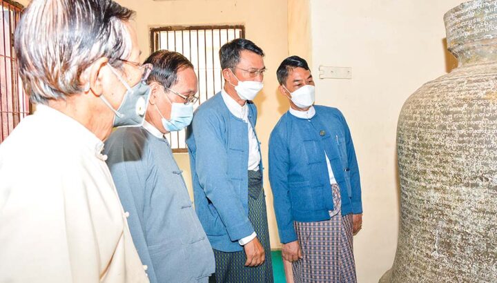 Afterwards, the Union Minister inspected the strength of Shwesigon Pagoda, King Bayint Naung’s Bell which is one of the world’s heritage items, a “Memory of the World”, and King Kyansittha’s Stone Inscription, and instructed requirements.