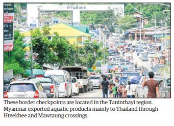 Myanmar exported aquatic products mainly to Thailand through Hteekhee and Mawtaung crossings.