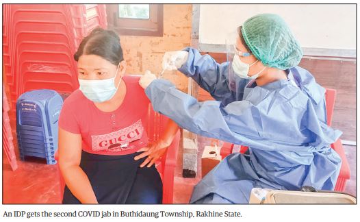 THE second dose vaccination of Sinopharm COVID-19 vaccine was given to displaced elderly people aged 65 and over in the IDP camps at Gandari Philanthropic Monastery in Buthidaung Township, Rakhine State, from 8 am yesterday.