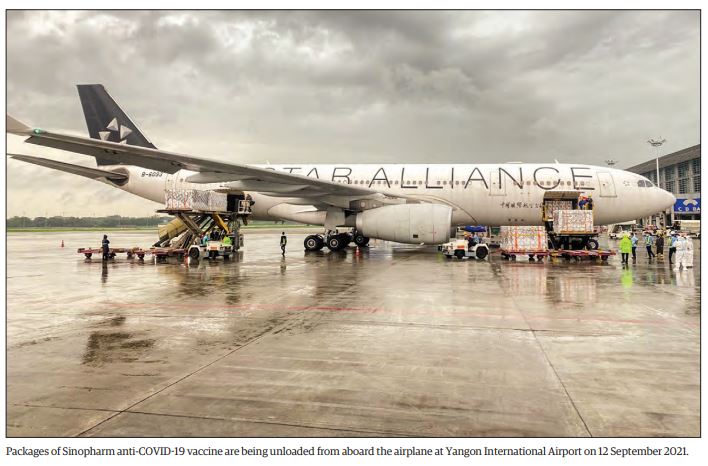 These vaccines will be distributed to respective regions and states via land and air routes with the help of Tatmadaw (Air) starting today.
