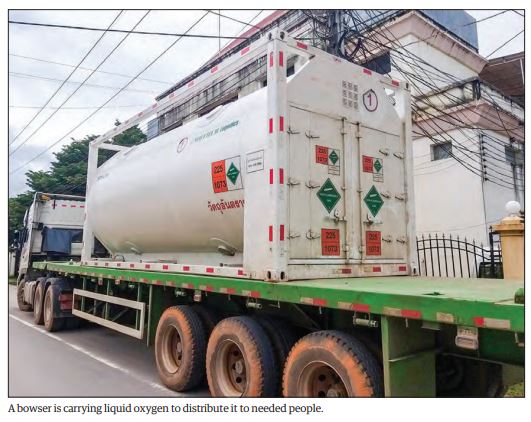 Two bowsers carrying liquid oxygen led to Yangon and one to Mawlamyine, and one each of oxygen plant to Mandalay, Chauk, Mohnyin, Kangyidaunt, officials said.