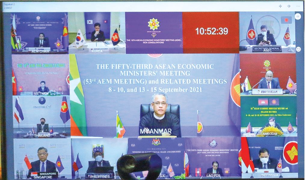 UNION Minister for Investment and Foreign Economic Relations U Aung Naing Oo participated in the 20th AEM-MOFCOM Consultations, 18th AEM-ROK Consultations, 13th Mekong-Japan Economic Ministers’ Meeting, AEM Troika Open-ended Dialogue with Switzerland Trade Minister and 24th AEM-Plus Three Consultations which were held via video conferencing started at 7:00 yesterday am from the Ministry of Investment and Foreign Economic Relations, Nay Pyi Taw.