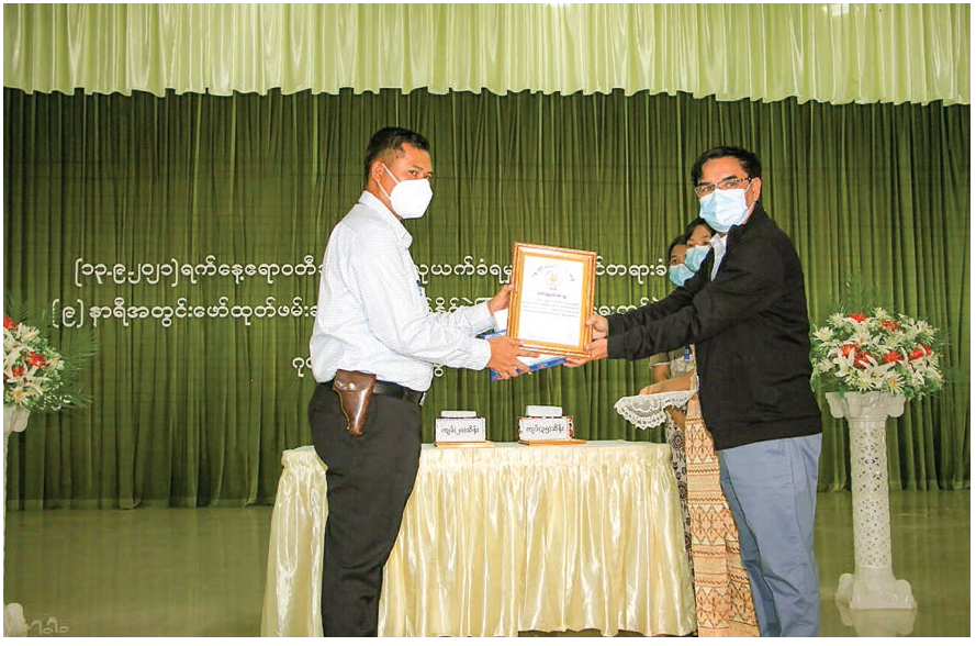 The Chief Minister presented a certificate of honour with K4.5 million to the Tatmadaw members and a certificate of honour with K2 million to the military affairs security forces from the Southern Command respectively. Commander of the Southern Command Brig-Gen Htein Win presented K3.5 million with a certificate of honour to the members of the Bago Region Police Force. The Police Lieutenant Colonel of the Bago District Police Force expressed words of thanks on behalf of the honoured members.