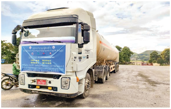 A total of 38 tonnes of oxygen (liquid) carried by two bowsers, 940 empty oxygen cylinders, one oxygen plant, 256 oxygen concentrators for home use, 500,000 PPE suits, and 17 tonnes of masks were imported via Muse, Myawady, Tachilek and Chinshwehaw trading posts, ports, and Yangon International Airport.