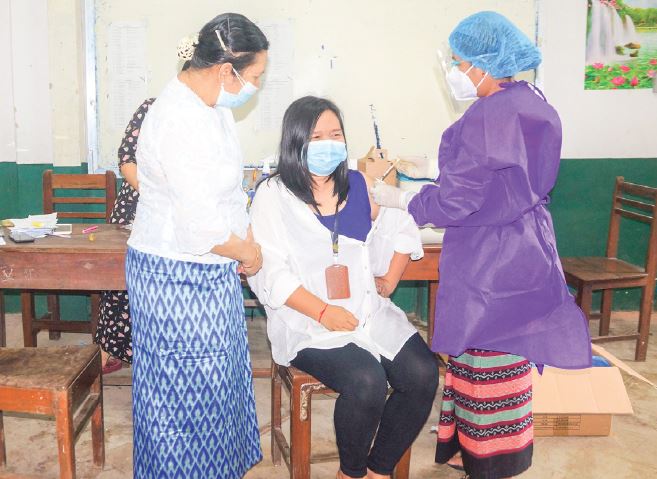 THE Government has accelerated the COVID-19 vaccinations across the country since the third wave of COVID-19 in Myanmar. Yesterday, a total of 57 media professionals received their first dose of the Sinopharm COVID-19 vaccines at No (6) Basic Education High School in Botahtaung Township, Yangon.