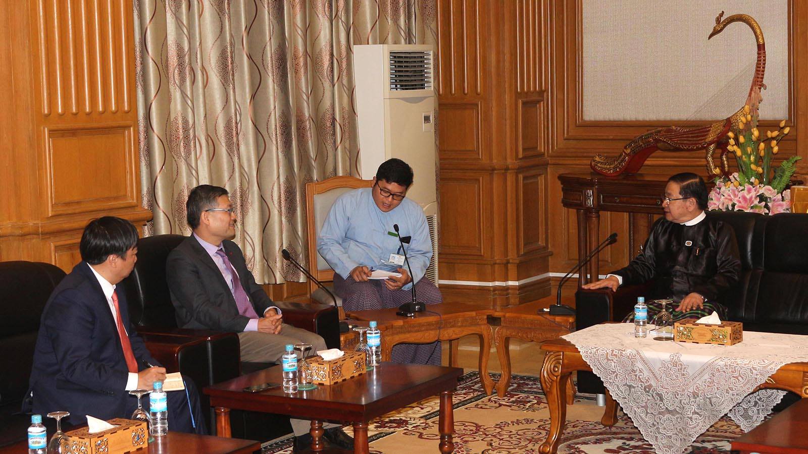PYITHU Hluttaw Speaker U T Khun Myat received Ambassador of Viet Nam Mr Ly Quoc Tuan at the Pyithu Hluttaw guest hall in Nay Pyi Taw yesterday.