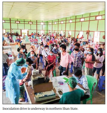 CIVIL service personnel and their families, and people above 18 from various backgrounds, including people with disabilities and people from IDP camps in Mongyai Township, northern Shan State received the first jabs of the COVID-19 vaccine yesterday.