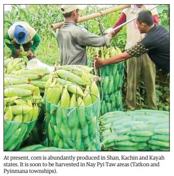 The corn can be planted in multiple cropping forms. At present, corn is abundantly produced in Shan, Kachin and Kayah states. It is soon to be harvested in Nay Pyi Taw areas (Tatkon and Pyinmana townships).