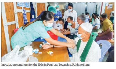 Vaccines were already given at Sin Tat Maw Village IDP Camp and Anouk Ye IDP Camp and a vaccination programme will be conducted next at the Kyein Ni Pyin IPD Camp, Nget Chaung (1) IDP camp, and five designated places at Nhet Chaung (2) IDP camp respectively, officials said.