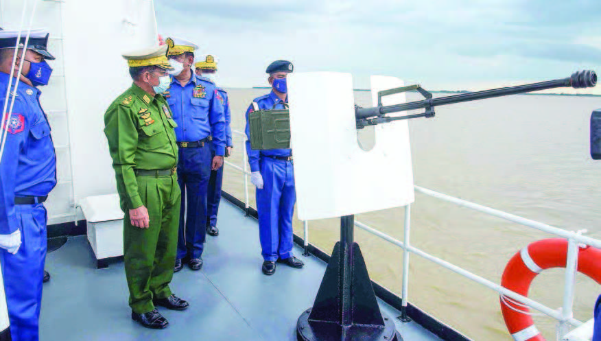 WITH the aim of controlling the measures on maritime security and the rule of law in the area from the onshore to the specific economic zone along Myanmar coasts, protecting the national maritime interests, conducting the tasks of search and rescue in the seas, combatting the seacrossing crimes, exchanging the information, enhancing the diplomatic relations linking with international coast guards and contributing to the Tatmadaw (Navy) in the wars, a ceremony to constitute the Myanmar Coast Guard and commission the coast guard vessels into service yesterday took place at No 3 Naval Jetty in Yangon.
