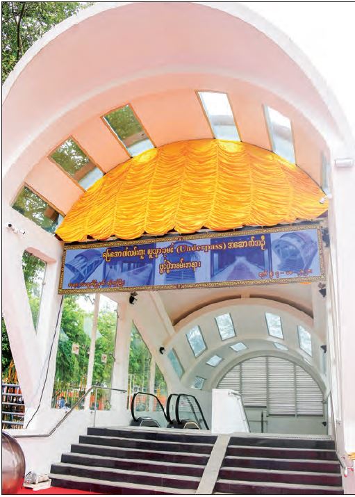 The Yangon Region Chief Minister, the Commander of Yangon Command and the mayor formally opened the underpass and the Senior General unveiled the entrance to the underpass.