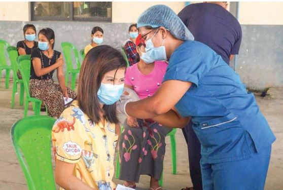Vaccination of factory workers from private factories in Htantabin Township was carried out by health workers as per health guidelines under the auspices of the township COVID-19 disease control and emergency response committee.