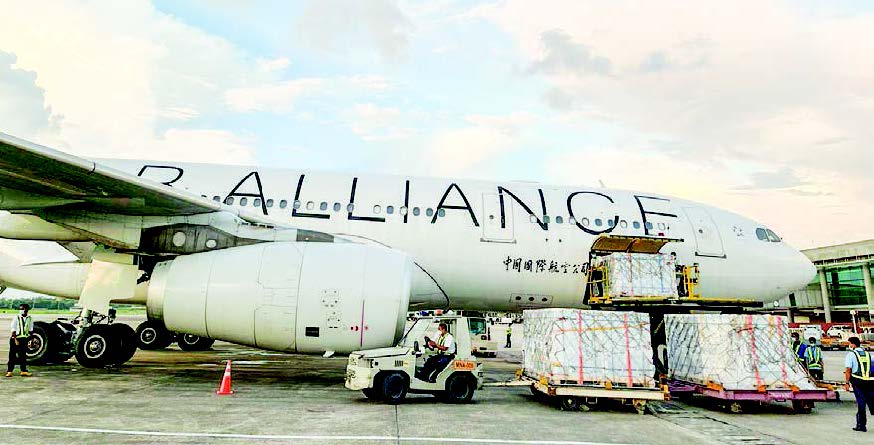 Deputy Director-General of the Yangon Region Public Health Department Dr Tun Min and officials received the vaccines carried by the Air China Airplane A332, at the Yangon International Airport.