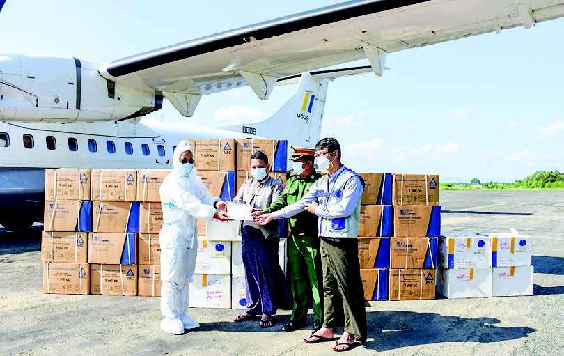 Member of the state government and Minister for Social Affairs U Win Ye Tun, Dr Tint Naing from the Department of Public Health and staff received 7,120 doses of Sinopharm COVID-19 vaccines for a total population of 35,600.