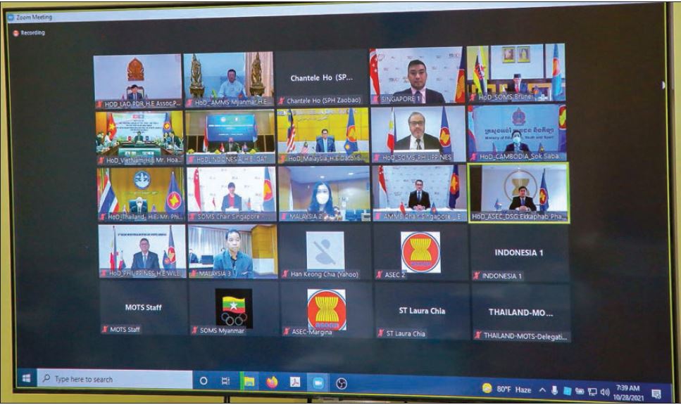 UNION Minister for Sports and Youth Affairs U Min Thein Zan attended the ASEAN Ministerial Meeting on Sports (AMMS-6) and 3rd ASEAN Plus Japan Ministerial Meeting on Sports (3rd AMMS+Japan) via the videoconferencing system, hosted by Singapore(in picture).