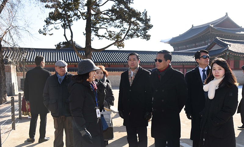 The Vice President was accompanied by Union Minister Thura U Aung Ko and officials as they made their way to Gyeongbokgung Palace by motorcade in the morning. They were given a tour of the palace by an expert.